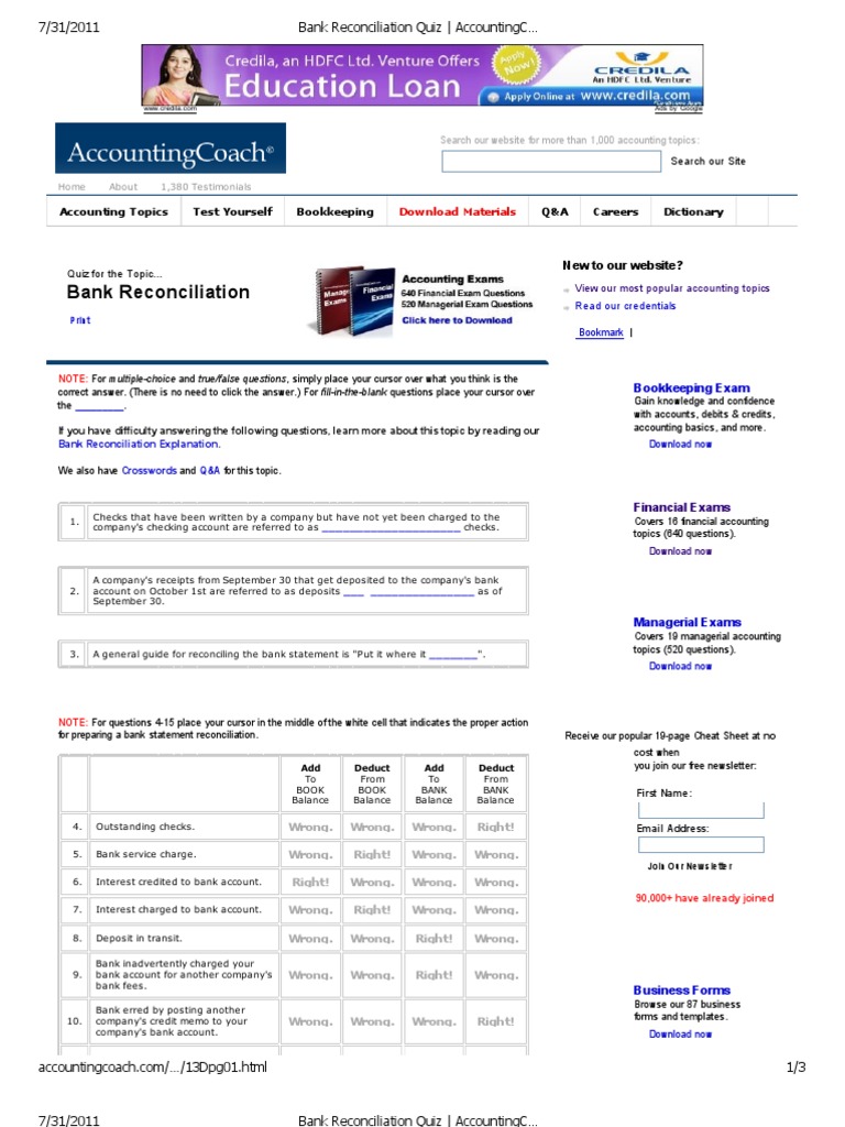 Accounting Coach Review Is This A Good Bookkeeping Course from www.topbookkeepingcourses.com Steps in a bank reconciliation. The end goal is to have the bank balance equal to the balance in your financial records. Small businesses should reconcile their bank checking accounts at the end of every month to ensure the balance shown on their books are the same as those shown on bank statements. Reconciling the two accounts helps identify whether accounting changes are needed. 4 adjustments in bank reconciliation. To choose multiple lines, press and hold the ctrl key. Choose the match manually action. #excellencefamily#excellenceeducationbhanpura#excellenceeducation#excellenceclass 11accountancybank reconciliation statement ( part 5)according to pass bookh.